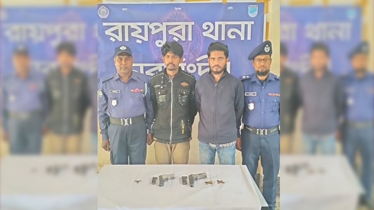 রায়পুরা থানার অফিসার ইনচার্জ (ওসি) আদিল মাহমুদ জানান, ‘‘তারা দুজন রায়পুরা থানার তালিকাভুক্ত শীর্ষ সন্ত্রাসী। আটকের সময় তাদের কাছ থেকে দুটি পিস্তল, ১১ রাউন্ড গুলি, দুটি ম্যাগজিন ও দুটি মোবাইল উদ্ধার করা হয়। এ ছাড়াও তাদের বিরুদ্ধে একাধিক মামলাও রয়েছে।
