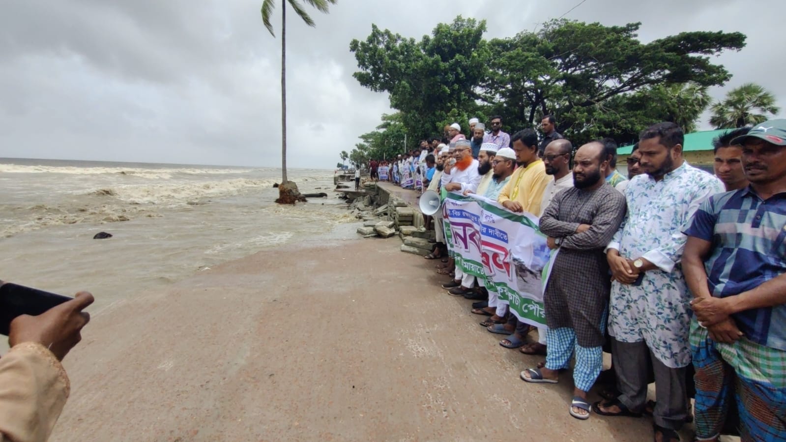এই সমুদ্র সৈকত রক্ষায় শনিবার (২৬ জুলাই) সকালে “কুয়াকাটা বাঁচাও, পর্যটন বাঁচাও” এই স্লোগানকে সামনে রেখে সৈকতে দাঁড়িয়ে মানববন্ধন করেছে হাজারো মানুষ।