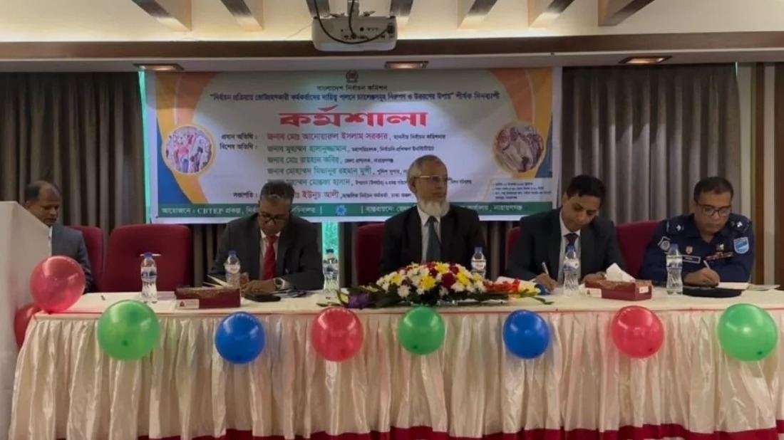 সোমবার (১ ডিসেম্বর) নারায়ণগঞ্জের বন্দরের সায়রা গার্ডেনে ‘নির্বাচন প্রক্রিয়ায় ভোট গ্রহণকারী কর্মকর্তাদের চ্যালেঞ্জ ও উত্তরণের পথ’ শীর্ষক কর্মশালায় প্রধান অতিথির বক্তব্যে তিনি এ অবস্থান তুলে ধরেন।