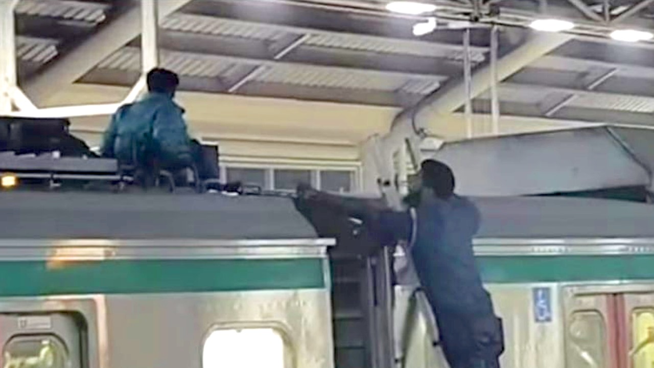 মেট্রোরেলের ছাদে দুই ব্যক্তি: ট্রেন চলাচল স্থগিত