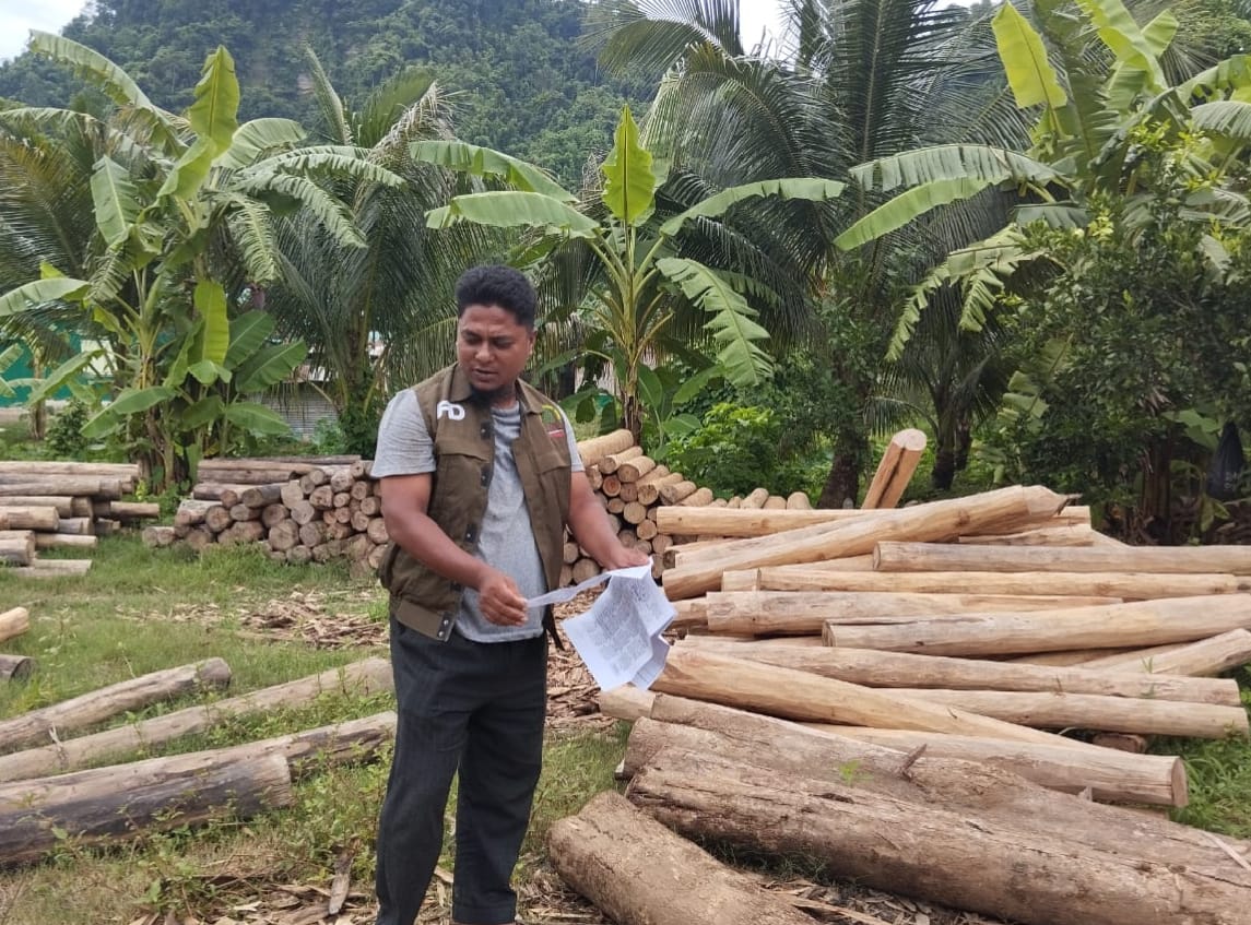 বান্দরবানের রুমা উপজেলায় একটি গাছের ডিপোতে কেরানী আবুল কালাম আজাদ (উজ্জ্বল)-কে বন বিভাগের পোশাক পরে গাছ তদারকি করতে দেখা গেছে—এমন
