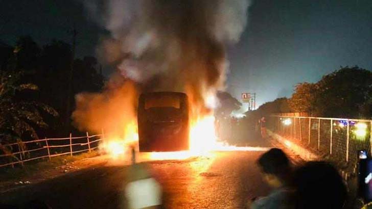ঢাকা ও ফরিদপুরে বাসে অগ্নিসংযোগ