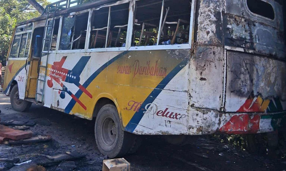 মধ্যরাতে শিবালয়ে স্কুলবাসে আগুন, চালক দগ্ধ