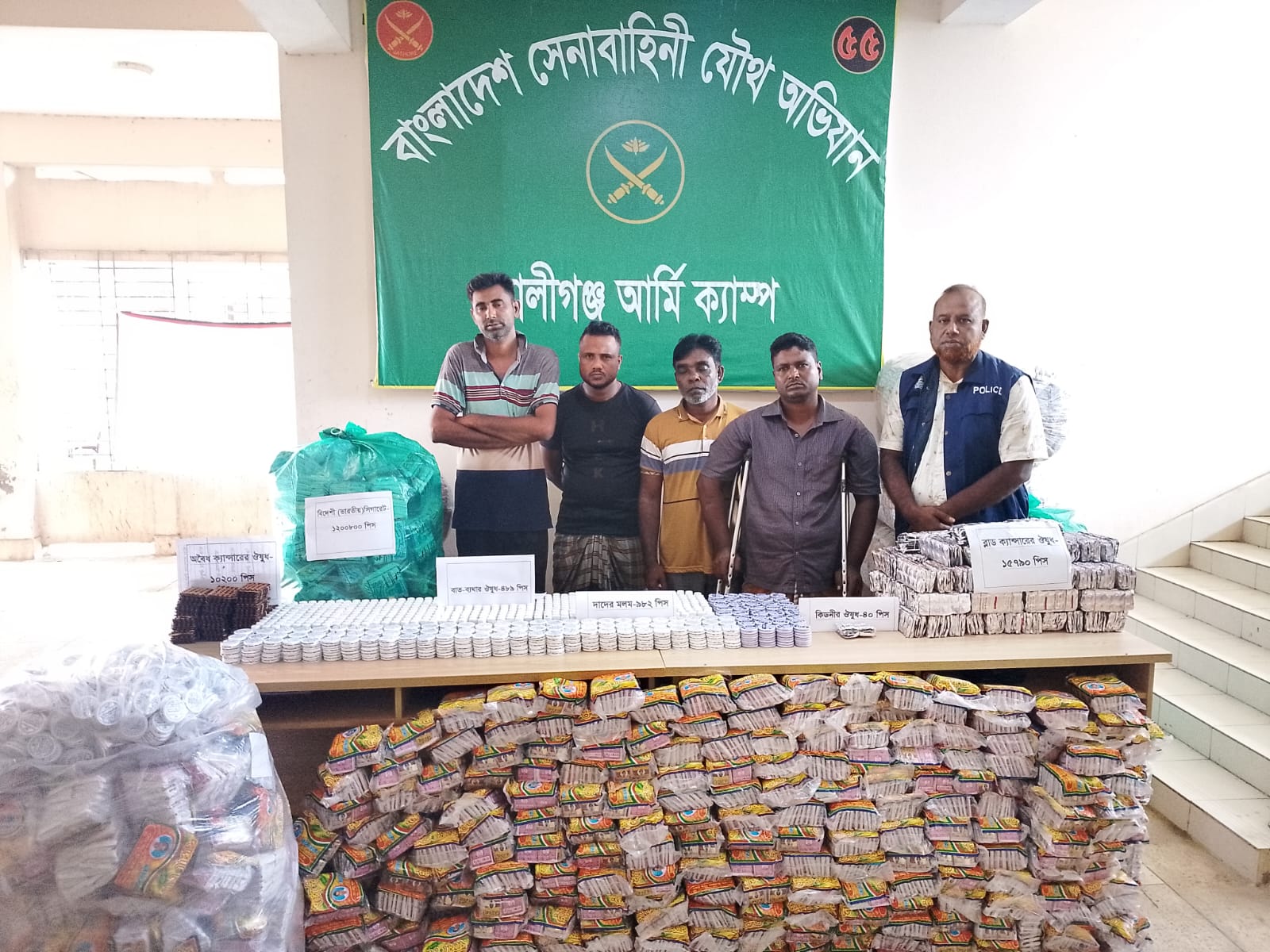 সাতক্ষীরার শ্যামনগরে সেনাবাহিনীর অভিযানে ভারত থেকে চোরাই পথে আনা বিপুল পরিমাণ পাতা বিড়ি, ক্যান্সারের ওষুধসহ প্রায় ৫০ লাখ টাকার মালামাল